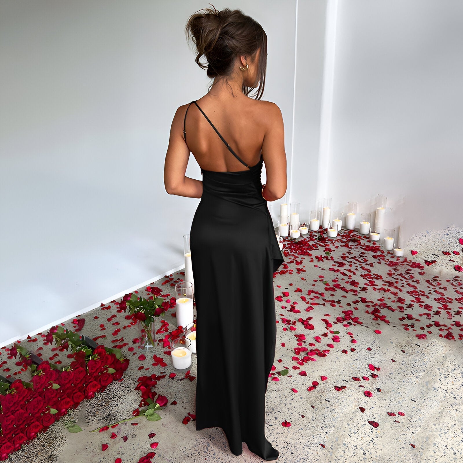 Förförisk hög slits: Den eleganta slitsen ger klänningen en elegant touch, perfekt för de speciella tillfällen där du vill göra intryck.
