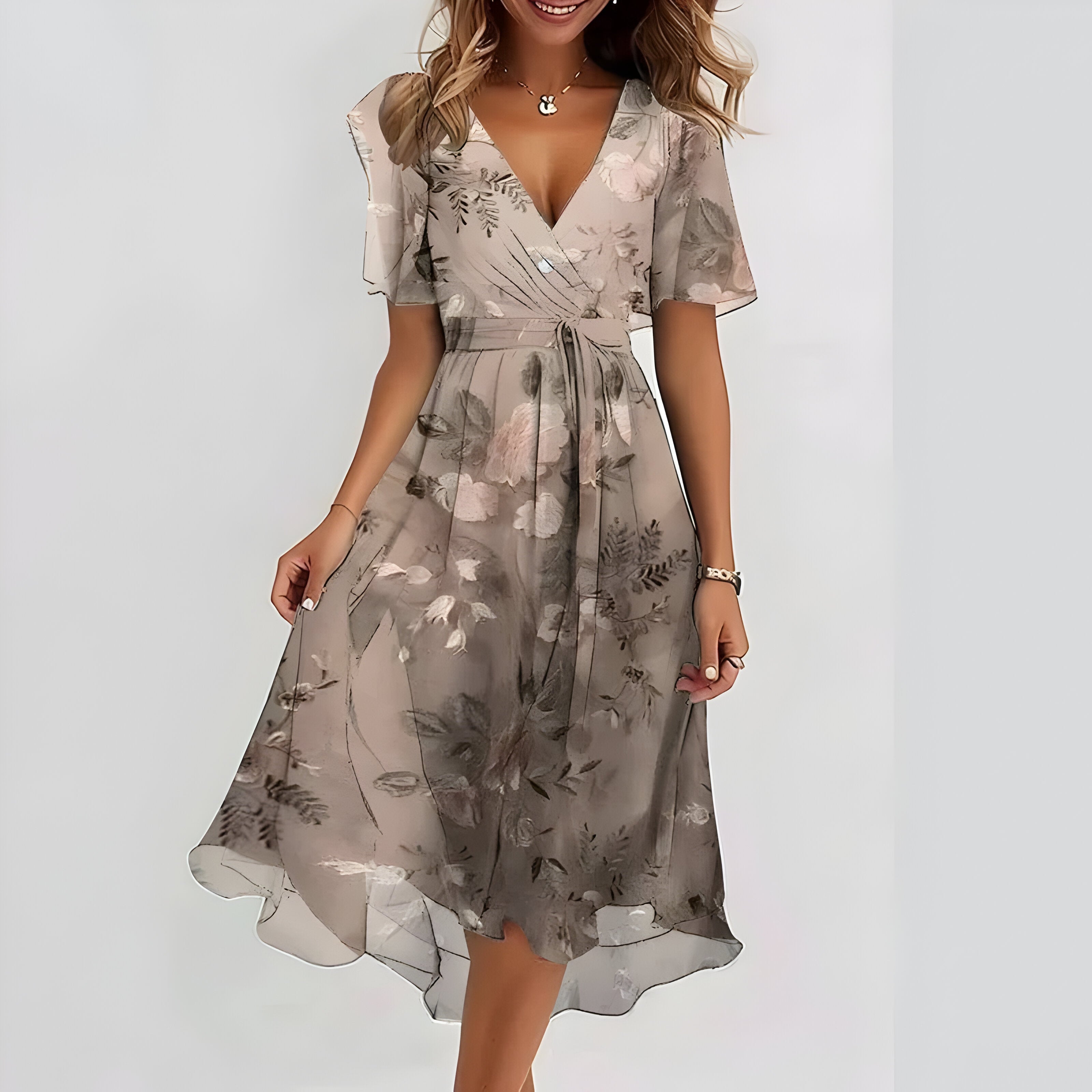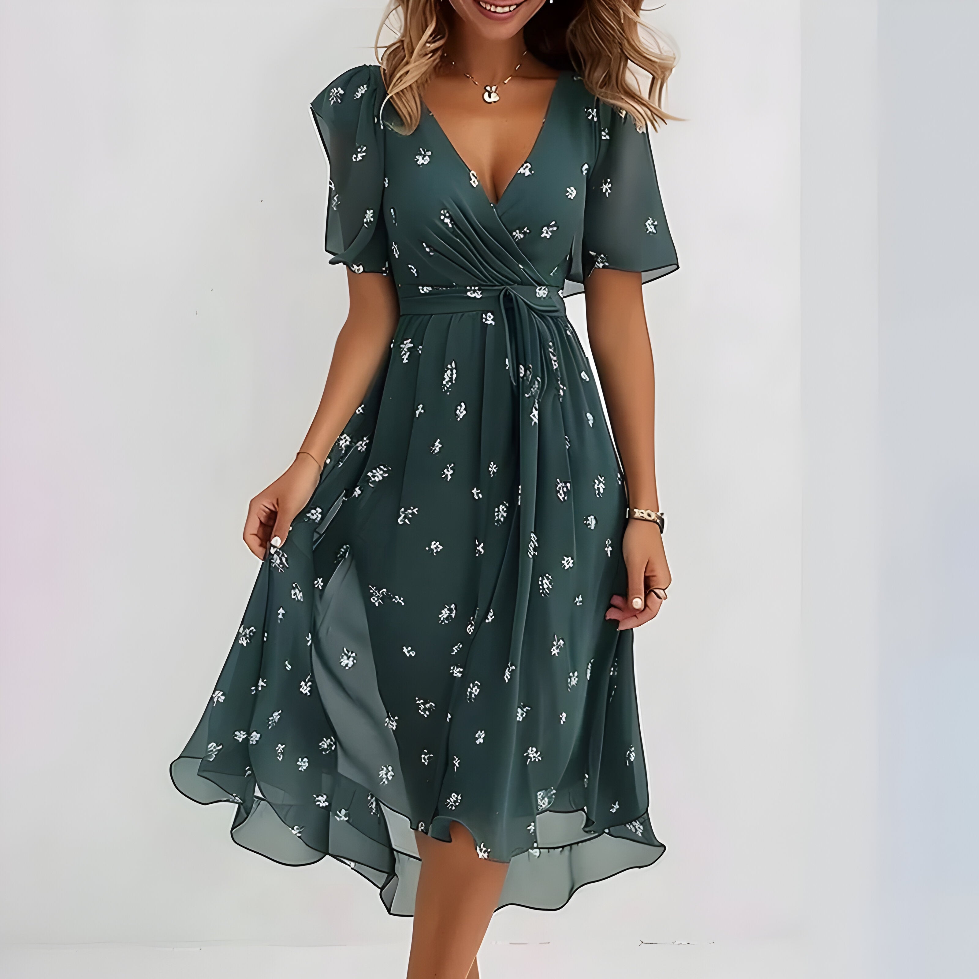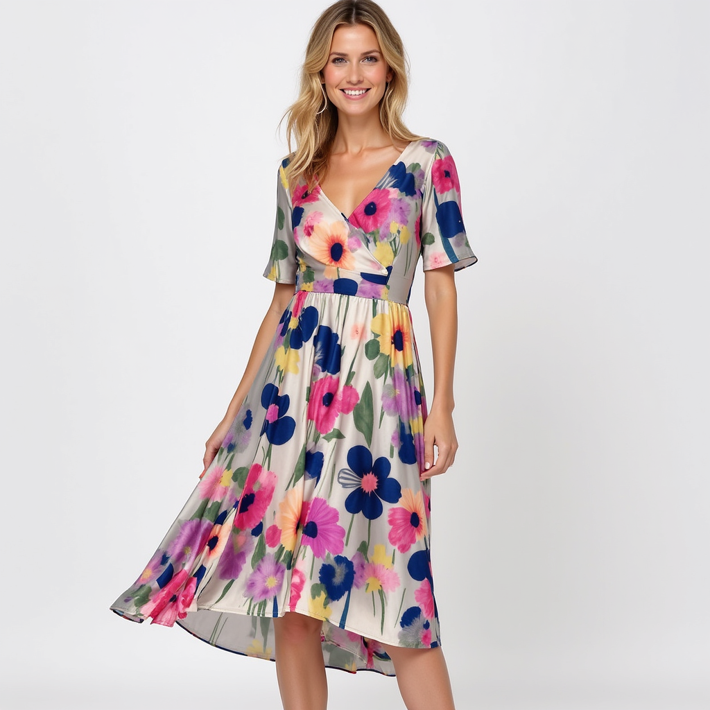 FörestĂ€ll dig att ta pĂ„ dig en klĂ€nning som direkt fĂ„r dig att kĂ€nna dig fri, feminin och sjĂ€lvsĂ€ker. Evinda sveper vackert runt din kropp och ger dig den dĂ€r drömmiga sommarkĂ€nslan â perfekt för bĂ„de strandpromenader och trĂ€dgĂ„rdsfester.