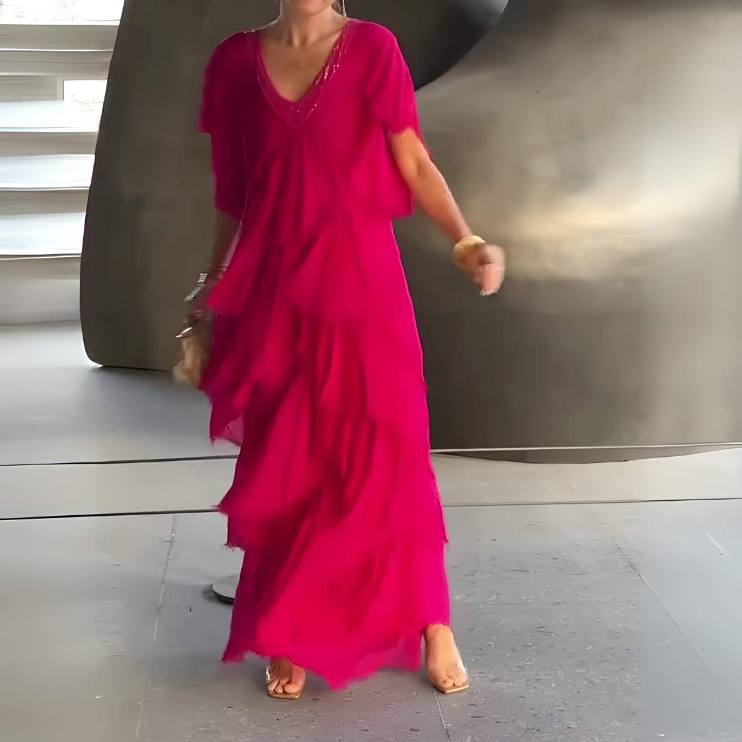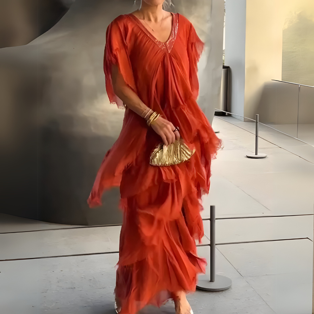 Ta steget in i en tidlös skönhet med Flavinia Elegant Dress. Den flödande silhuetten och den delikata blommiga designen ger elegans och romantik till varje tillfälle. Oavsett om det är en drömsk sommarkväll eller ett sofistikerat evenemang får den här klänningen dig att känna dig feminin, självsäker och enkelt chic.