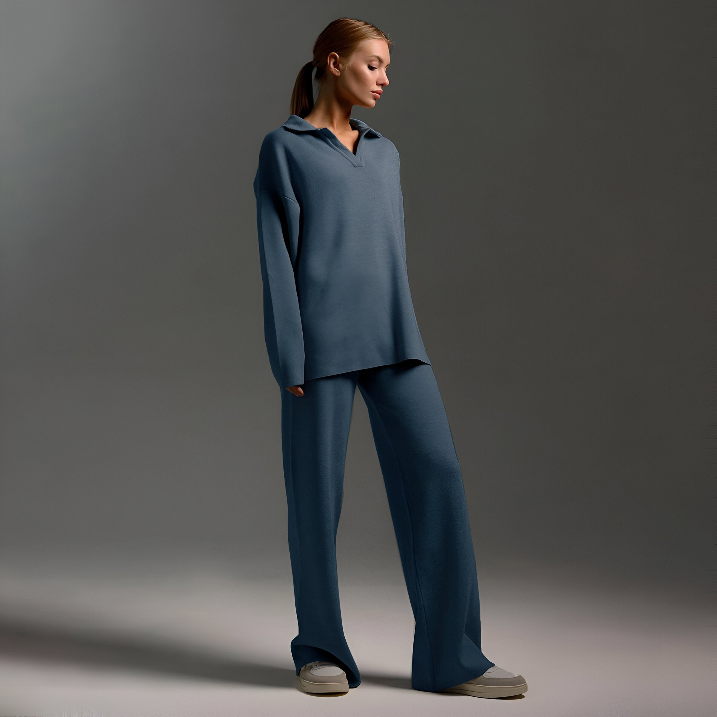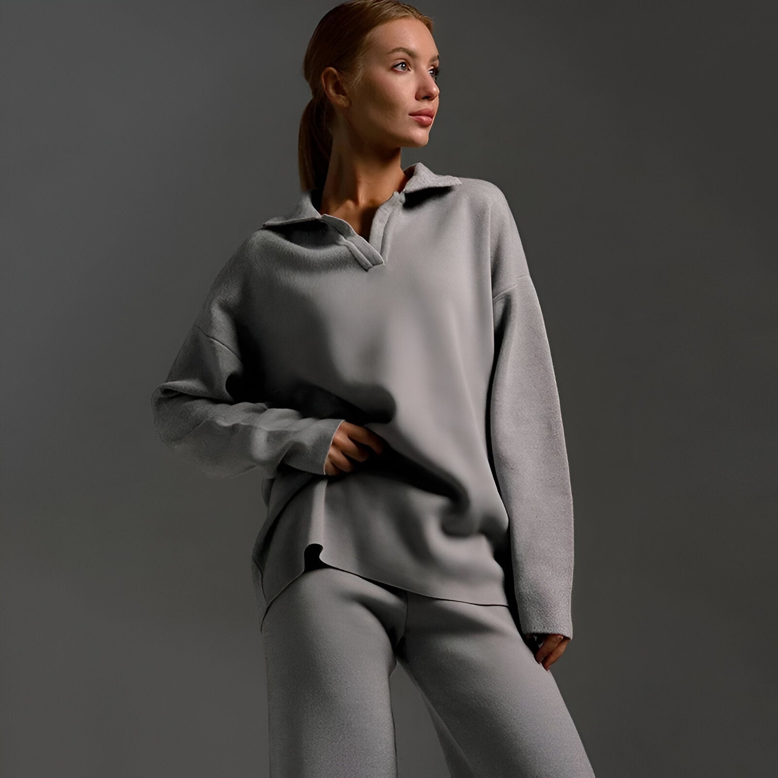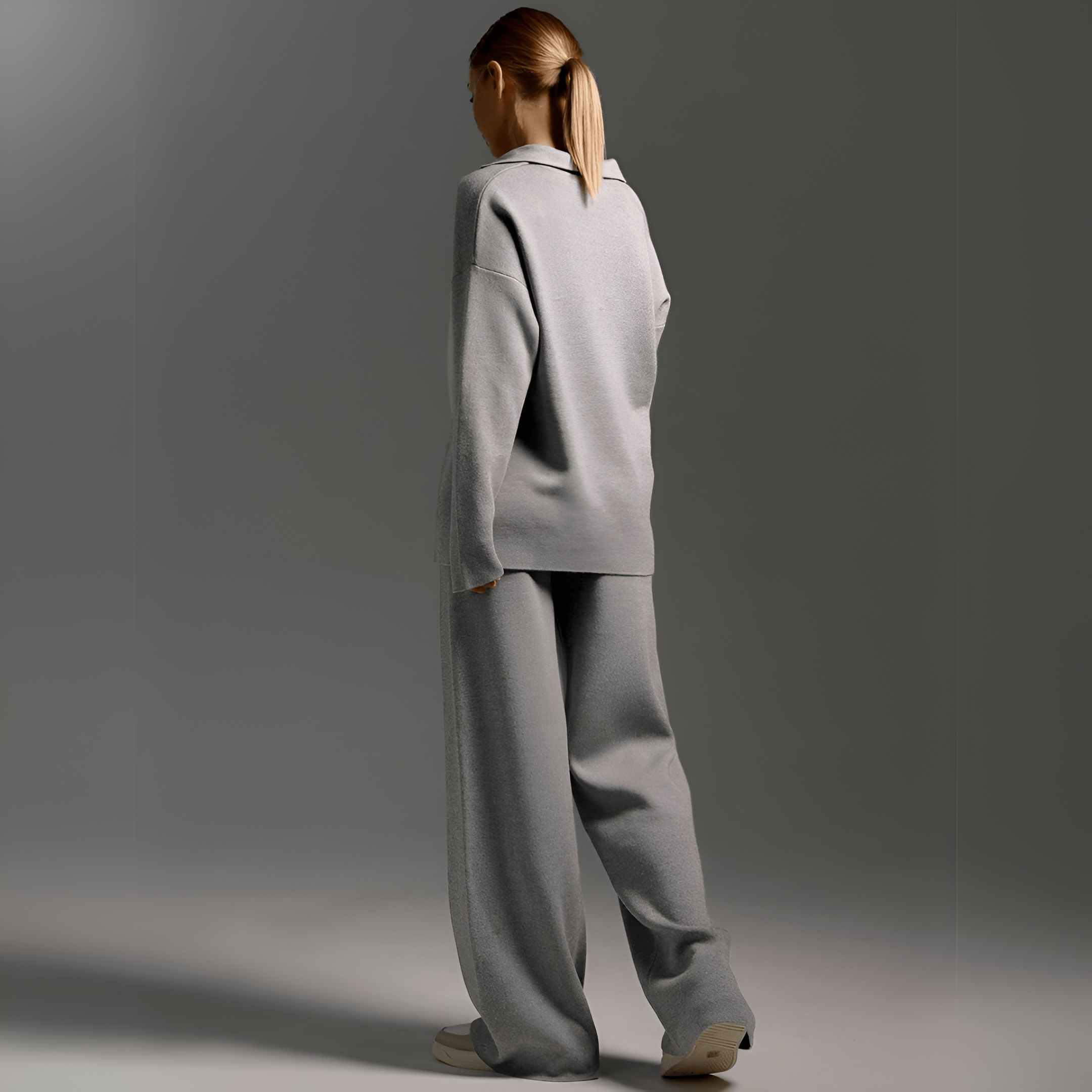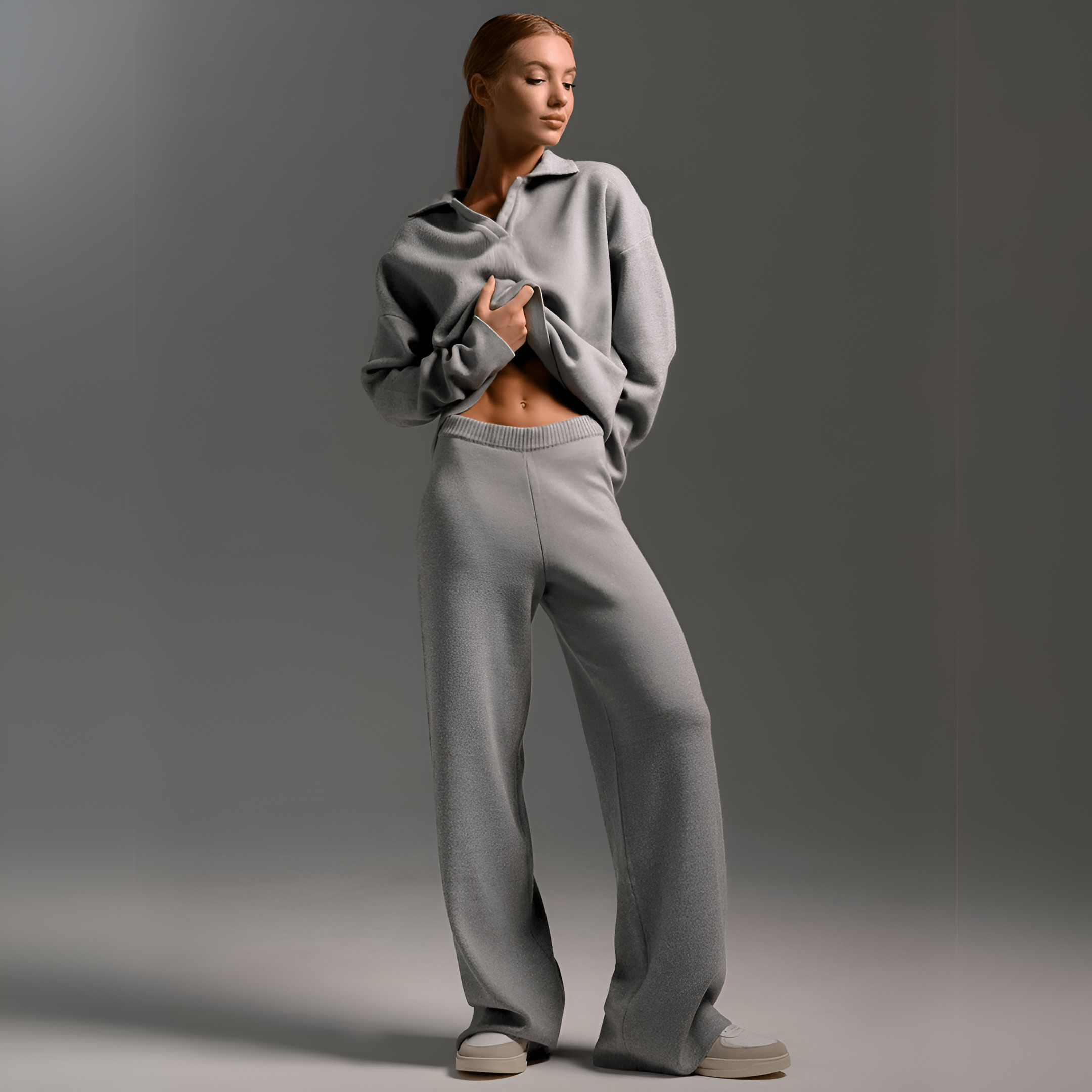 Den här träningsoverallen är tillverkad av mjukt tyg som andas och erbjuder en perfekt passform som får dig att må bra från morgon till kväll. Den moderna stickade designen ger en touch av lyx till alla tillfällen. Kombinera den med sneakers eller stövlar för en elegant look utan ansträngning.
