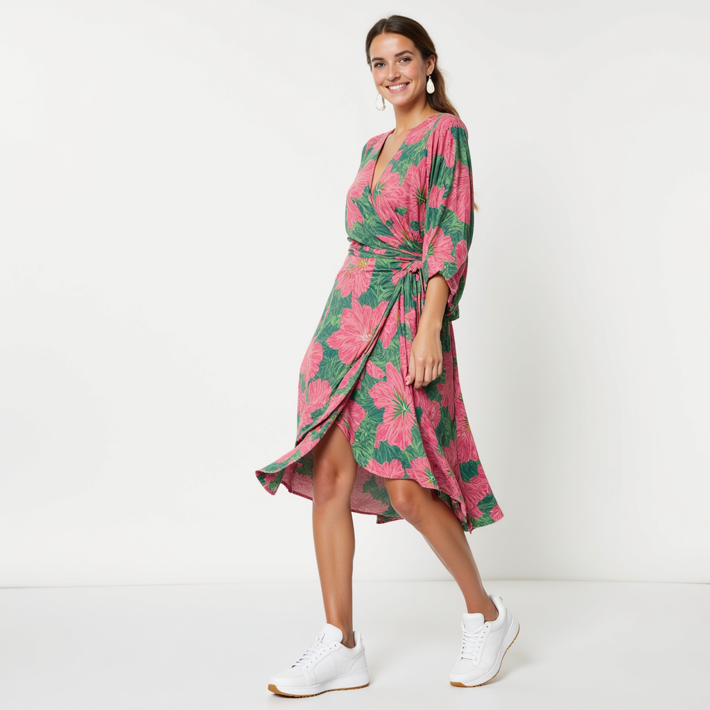 Upplev , klänningen som förenar sofistikerad stil och ultimat komfort. Det flödande omlottdesignen skapar en vacker silhuett som framhäver figuren på ett elegant sätt. Perfekt för alla tillfällen, från en avslappnad dag i solen till en stilfull kvällstillställning.