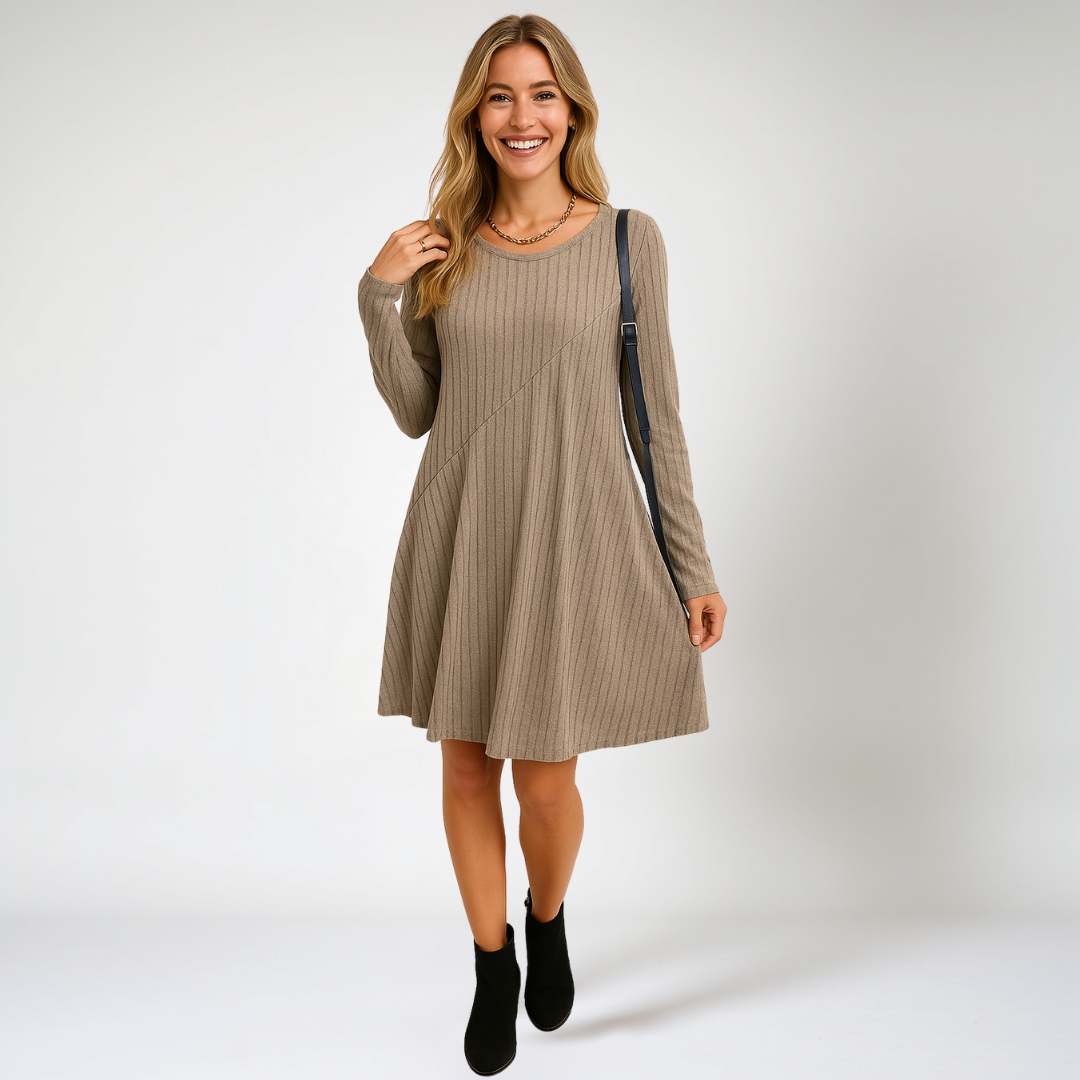 Vi presenterar Nadine, klänningen som på ett enkelt sätt kombinerar komfort och tidlös stil. Den är tillverkad i ett mjukt tyg som andas och passar perfekt för både vardag och fest. Oavsett om du är ute och promenerar eller njuter av en mysig kväll hemma ger Nadine dig en chic look utan att kompromissa med komforten.